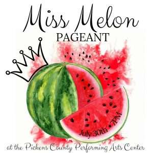 AS A KICKOFF TO MELONFEST AT HAGOOD MILL ON SATURDAY JULY 31ST, We WOULD LIKE TO CROWN YOUR PRINCESS THE FIRST MISS MELON AT THE PICKENS County PERFORMING ARTS CENTER ON FRIDAY JULY, 30TH! REGISTRATION CLOSES ON JUNE 25TH